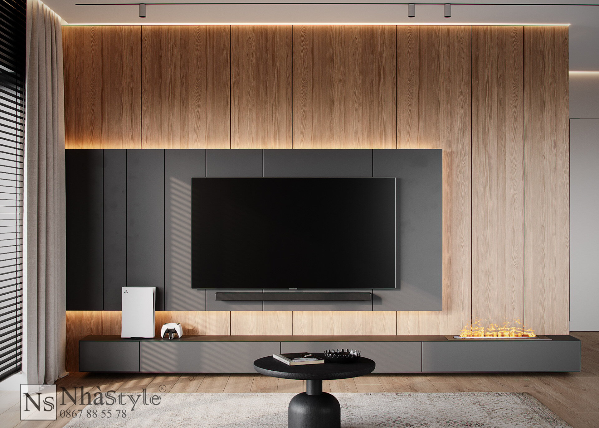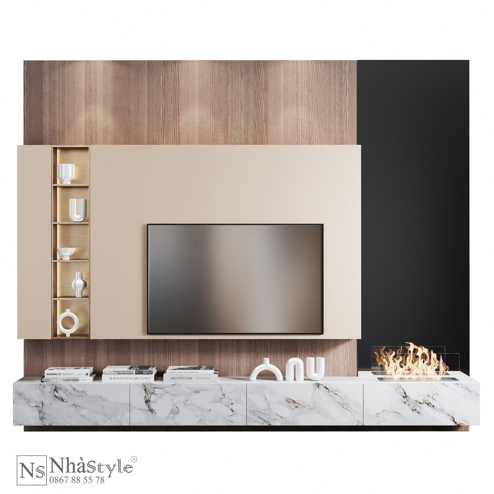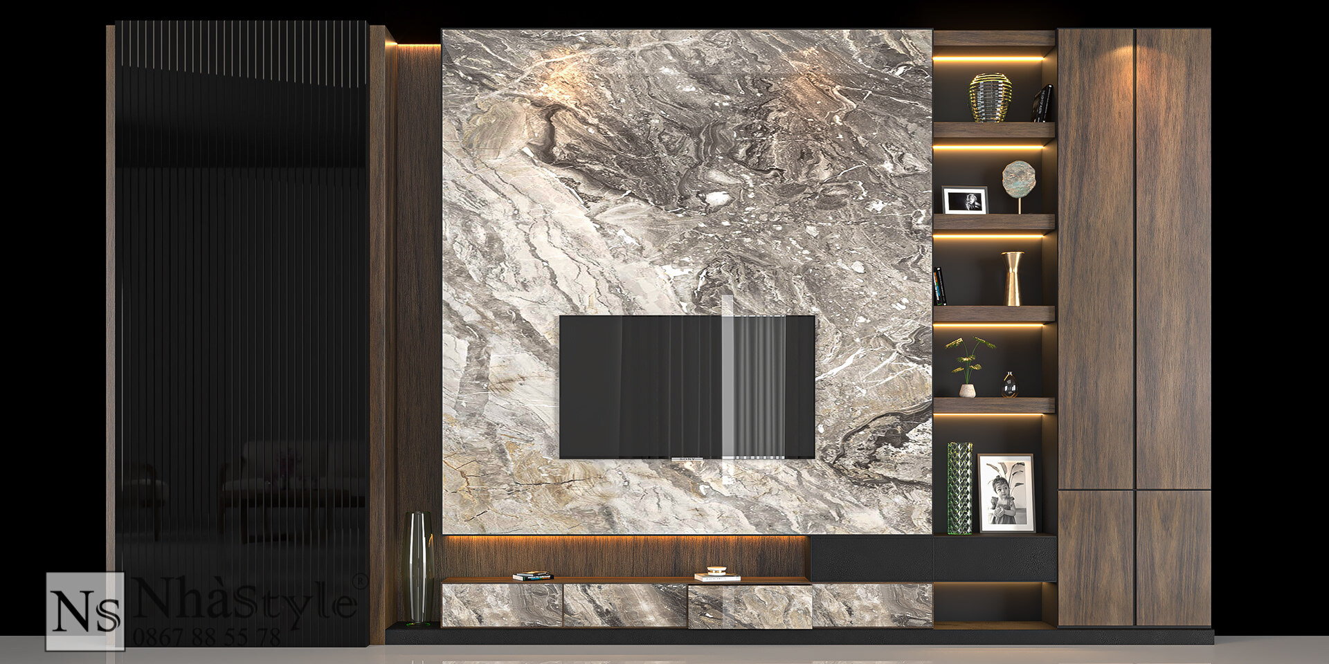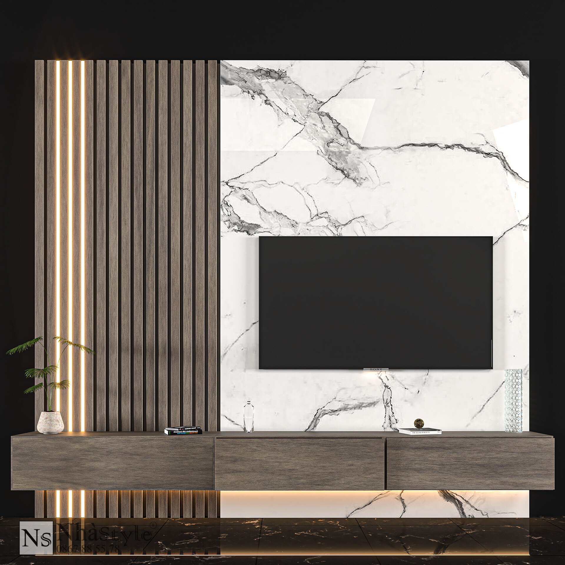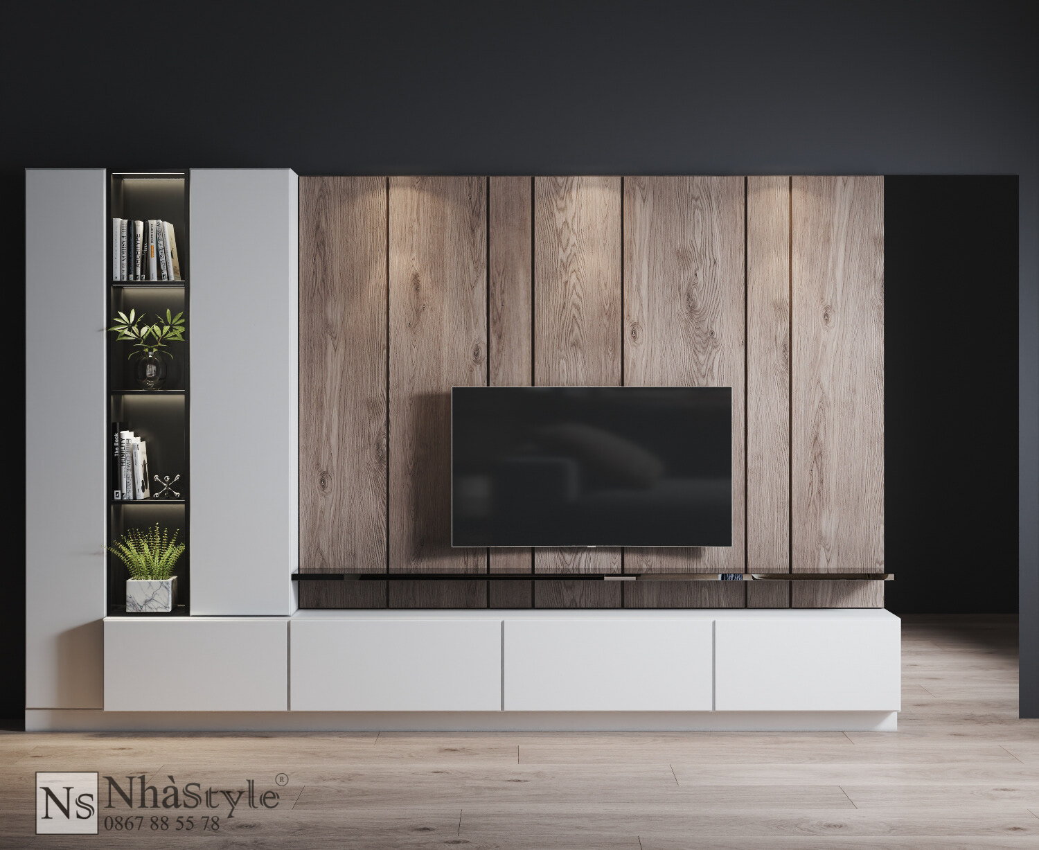 Vách Ốp Trang Trí Kệ Tivi