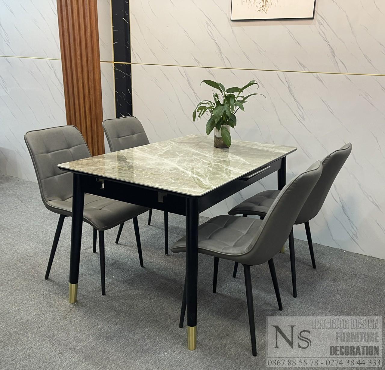 Bàn Ăn Thông Minh 042S – Mặt Bàn Ăn : Đá Ceramic – Chân Bàn Ăn: Chân sắt sơn tỉnh điện đen