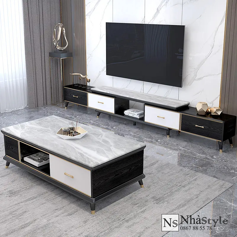 Bàn Sofa Gỗ Mặt Đá 054S – Mặt Đá tự nhiên chống thấm, dễ lau chùi